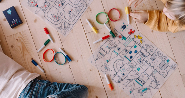 Pour encourager les enfants à créer et à repousser les barrières de l'imaginaire, Super Petit ne manque pas d'inspiration ! Ses sets de tables à colorier permettront à vos enfants de dessiner, colorier et effacer à volonté en attendant le repas. Cette marque française à l'esprit innovant et audacieux n'a pas fini de vous faire découvrir des objets et des accessoires ludiques aux thèmes toujours plus enchanteurs.